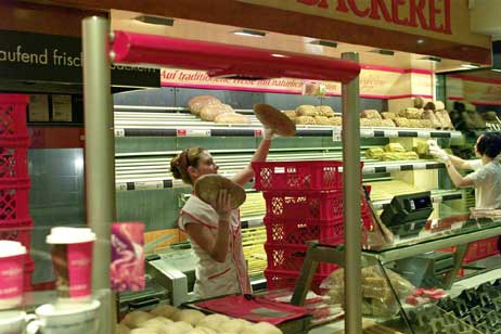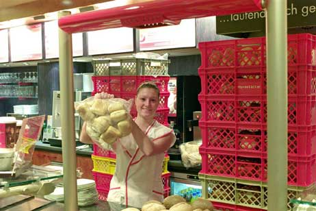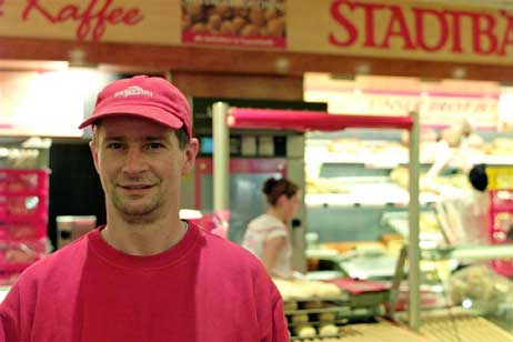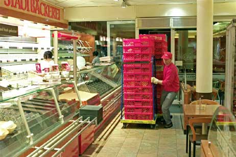 Und wenn Michael Berner seine hochgestapelten roten Körbchen durch die Ladentür schiebt, heißt es für die Verkäuferinnen kräftig zupacken. Flink aber umsichtig ab mit der Ware in die Regale. Denn während Brot, Brötchen und andere Leckerein zu ihrem »Liegeplatz verholt« werden um sich dem Kunden in bestem Lichte zu zeigen, ist Michael Berner bereits zur nächsten Filiale unterwegs.