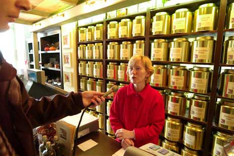 Hört man in der Vogtei jemanden Lachen, dann hängt das meist mit dem Tee-Kontor und den fröhlichen Verkäufern dort zusammen. Da ist man glücklich, erfahren wir, von der Vorderreihe in die Vogtei gezogen zu sein. Eine erhebliche Verbesserung sei das gewesen. Über 200 Sorten Tee gibt es. Natürlich auch einen schwarzen »Vogts Spezial«, weich und cremig, mit Saigon-Vanille und Safran-Fäden.