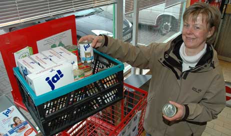 Susanne Tolkmitt aus Travemünde lädt eine der Futterspendenboxen für das Tierheim. Foto: HELGE NORMANN