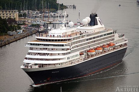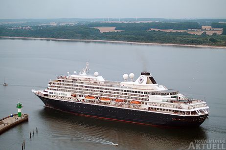 Als das Schiff dann wirklich erst kurz nach 19 Uhr die Nordermole passierte, waren es nur noch eine Handvoll Schaulustiger. Um so lauter schienen die Schiffshörner der »Prinsendam« zu tuten um sich zünftig von Travemünde zu verabschieden.