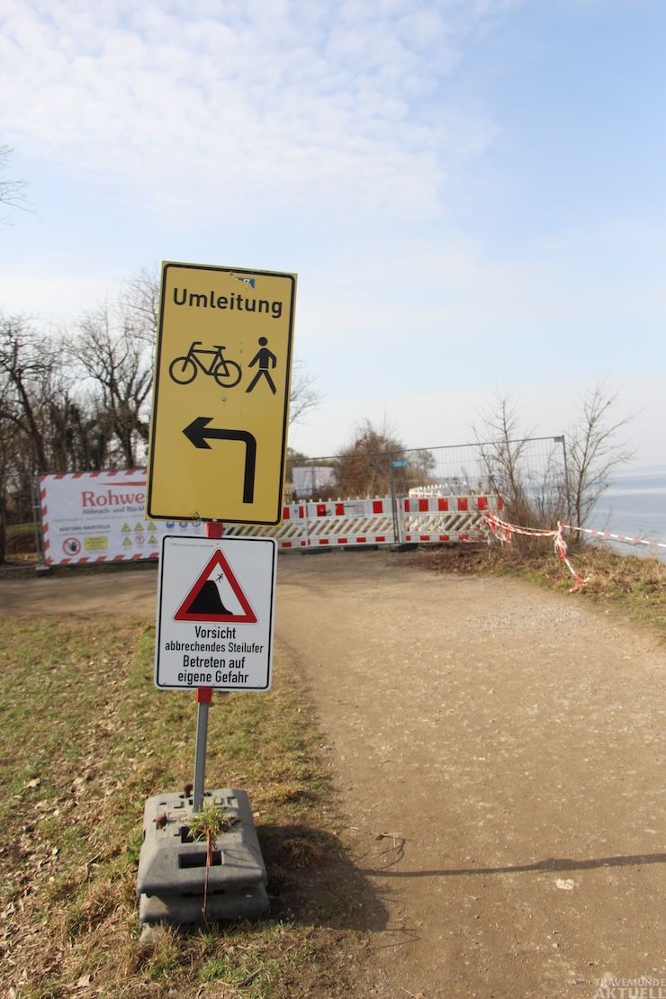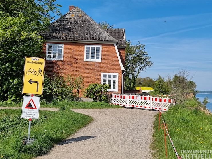 Wegen der zunehmenden Gefahr untersagte die Bauaufsicht der Hansestadt Lübeck im Jahr 2024 schließlich die weitere Nutzung des Gebäudes. Das Haus wurde geräumt und stand seitdem leer. Auch der Wanderweg direkt am Steilufer musste später aus Sicherheitsgründen teilweise gesperrt werden. Gleichzeitig entwickelte sich ein Streit um die Zukunft des Hauses. Während Fachleute vor der akuten Absturzgefahr warnten, wurde das Gebäude im Jahr 2025 sogar unter Denkmalschutz gestellt.